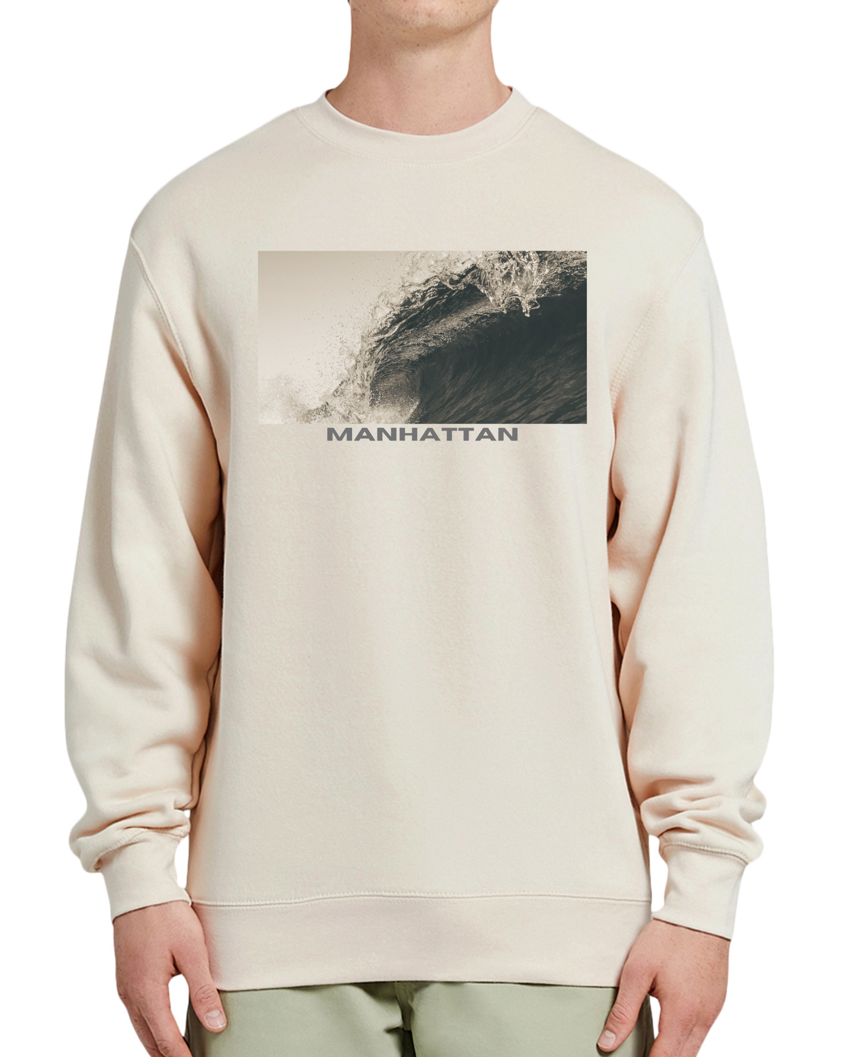 THE REESE MANHATTAN is a classic vintage 100% cotton fleece crew neck unisex sweatshirt with the classic SOCAL wave print.